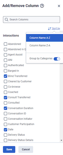 Currently, the column sorting option is default or alphabetical, with preferences immediately reflected on the screen. Following this update, workspace columns that users select will only take effect after they click Save. Also, instead of a single sorting method, users can sort columns alphabetically (ascending or descending) and by categories. This new approach organizes available columns into related groups, which simplifies the navigation and selection process. For more information, see the Upcoming UI Update Notice – Performance Views Column Picker community post.
